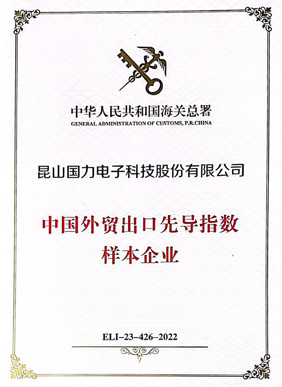 日前,中华人民共和国海关总署发布了《关于调整中国外贸出口先导指数调查样本企业的公告》(2022年第35号公告),包括国力股份在内的全国3118家企业在几十万家企业的评选中脱颖而出入选“中国外贸出口先导指数样本企业”名单。这项认证代表了海关总署对国力股份在外贸出口的规范性、信用度和规模的肯定,也是对公司出口数据的及时性和可靠性的充分肯定。